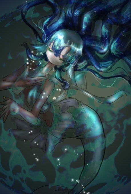 original/ 人魚 素敵な作家さまから これまた素敵なネックレスを購入させていただくんだけど楽しみがすぎて描いてしまった🧜(空リプ失礼します) #イラスト #illust #絵 #art #創作 #創作の狼煙