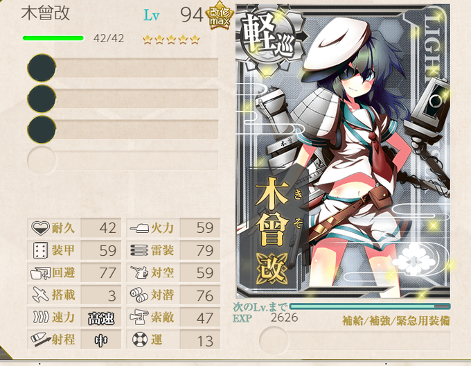 地味にレベルがあがっている改装前木曾さんを後半に出撃させる余裕はあるだろうか……うーん
