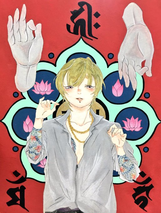 新作2枚目ができた!🌟 箱展の朱色縁起に向けてもう1枚描く予定~! 原画、見に来てね🐶💚 #箱展 #朱色縁起