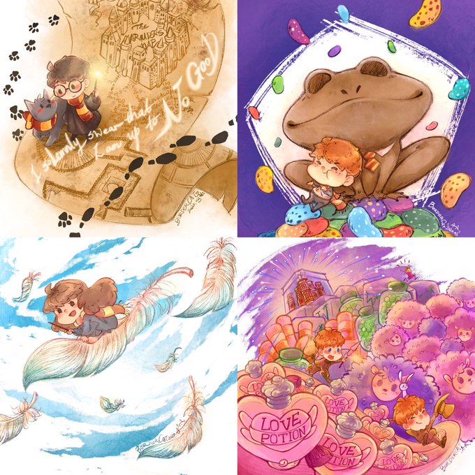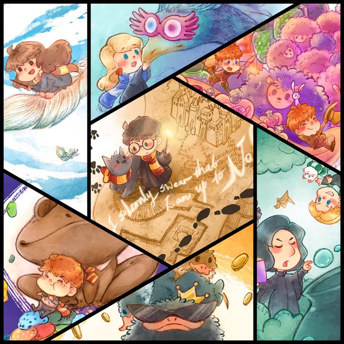 All the #HarryPotter fanarts I’ve done for #MagicalMischief challenge on IG. To draw what I like made me cheerful during these dark time. And the feedback from official accounts doubled the happiness! That’s the best present for my coming birthday! @jk_rowling #HarryPotterAtHome