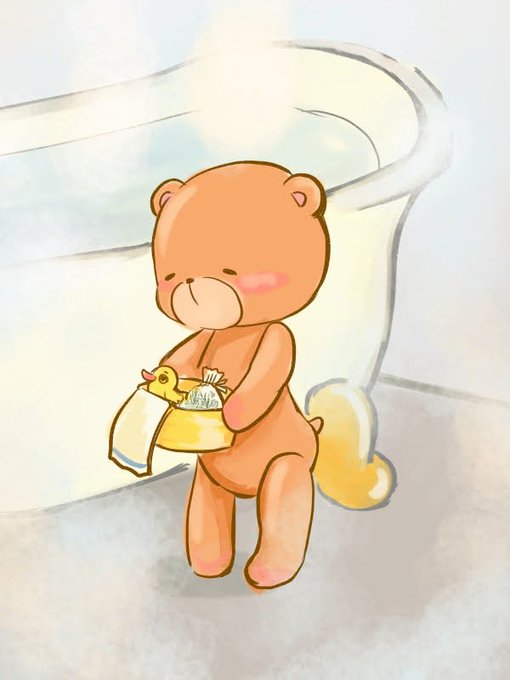 写真はお風呂の準備万端のくまちゃん。