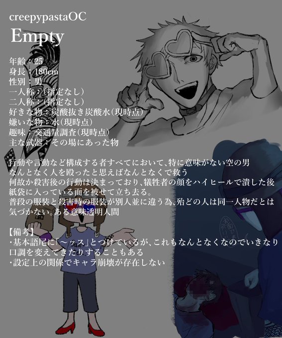 #creepypastaOC ざっくり設定付き資料