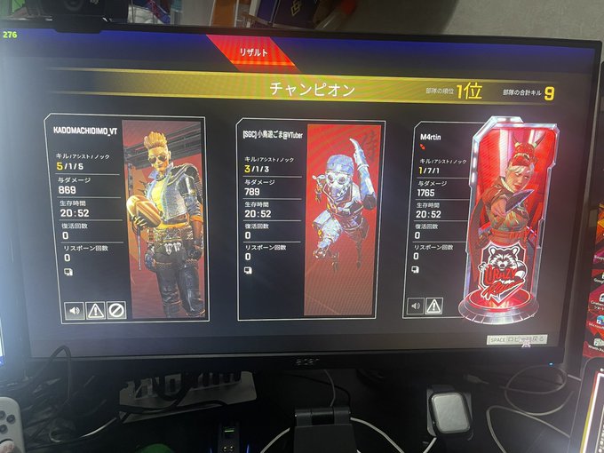 昨日はゆずたろペさんの配信にお邪魔して1戦だけAPEXやりました(*´ω`*)