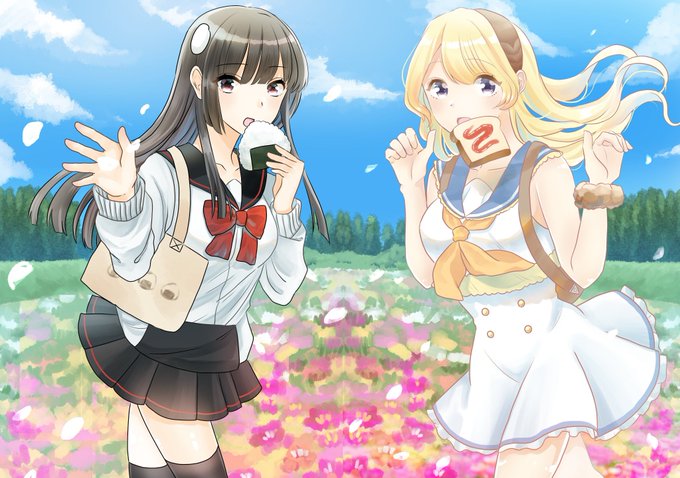 オリジナルキャラクターイラスト描きました……おにぎりとパンの擬人化