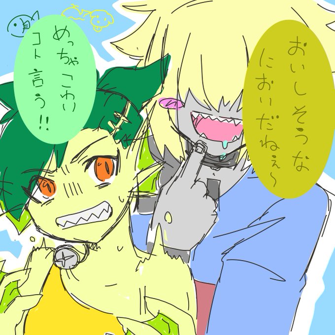 【@SakanaGreen】緑のおさかなさんと鯨犬 思い付いちゃって落書きしちゃった…(失礼)