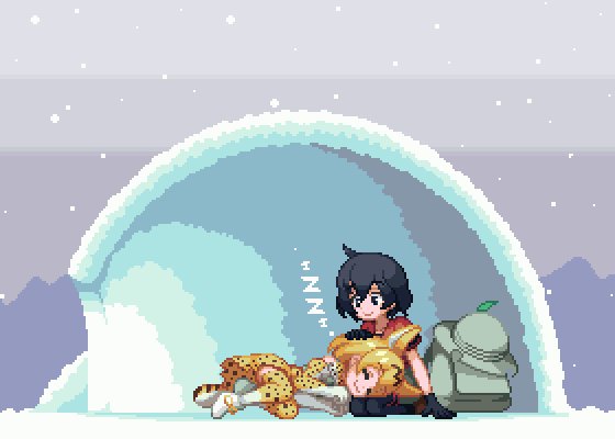自分的にはGBAの某ハムスターゲームみたいな探索アドベンチャー+ミニゲームなけもフレのゲームとかやってみたいな~って感じの妄想絵 #ドット絵