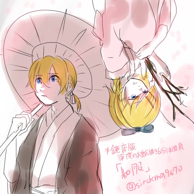 #鏡音版深夜のお絵描き60分1本勝負 「和服」 春ですね