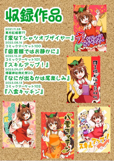 ↑こんな感じの話がまとめられてる総集編です。 ちょっとだけ描き下ろしもあります。 2024/05/03 博麗神社例大祭20 【お44a】「豆猫の隙間」です!よろしくおねがいします!