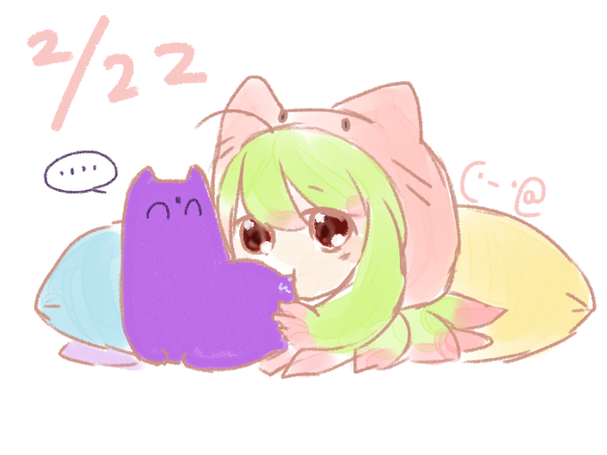 猫の日イラスト差分 くきわかめさん(@ikwkm_0610)ちの長にゃんくんお借りしています