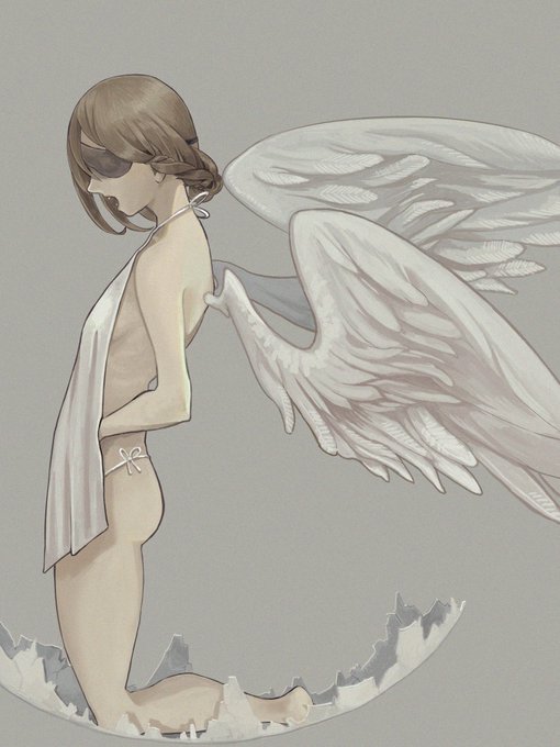 一枚目が号さんの、二枚目が白の線画です~👶🍼お題は「翼、隻眼、牙、裸足」でした~✨