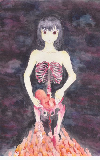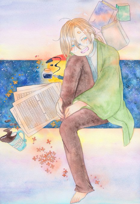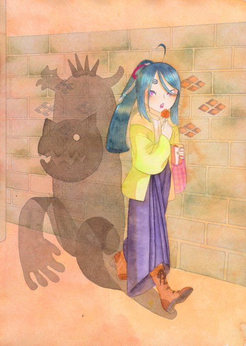水彩で妖怪や和風ファンタジーを中心に、高頻度で長髪の男性を描いています。メインの創作では引用先(RTと♡感謝!)の鬼たちを描いてます。