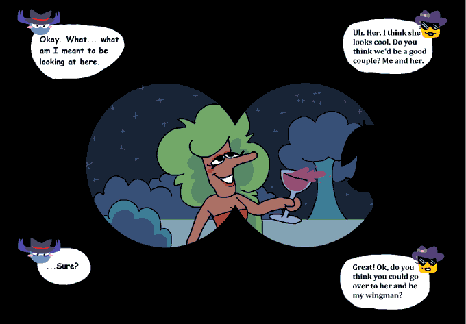 ok fuck it heres that WIP comic i was working on a few months ago. i havent touched it in ages and i want to get at least a tiny bit of it out there because i really like how some of it looks and i dont want it to just rot in my files forever