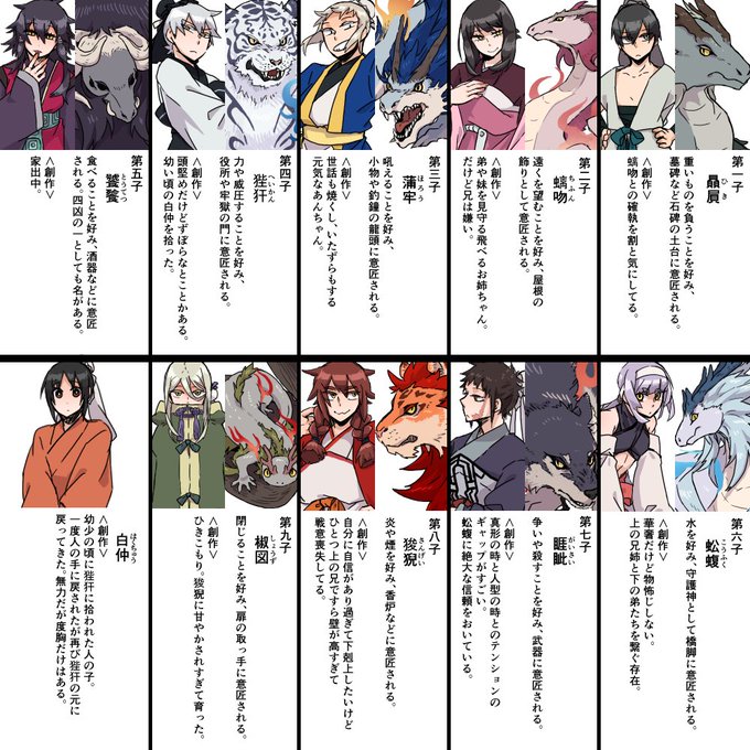 創作龍生九子。サイトで漫画をゆっくり描いておりましてその都合で九子ではないキャラも紹介しております。