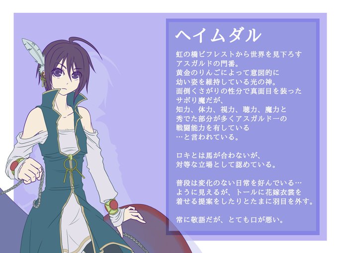 合法ショタのヘイムダルくん 口癖は 「僕の視界から即刻消えてください」 ※彼は昼夜問わず100マイル先まで見通すことができる。 口は悪いけどただのツンデレだよ。