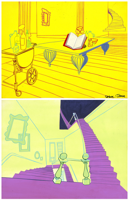 Background sketches from 1956 #ChuckJones film "Broomstick Bunny," with Bugs + Witch Hazel @EMPmuseum #wabbitExhibit
