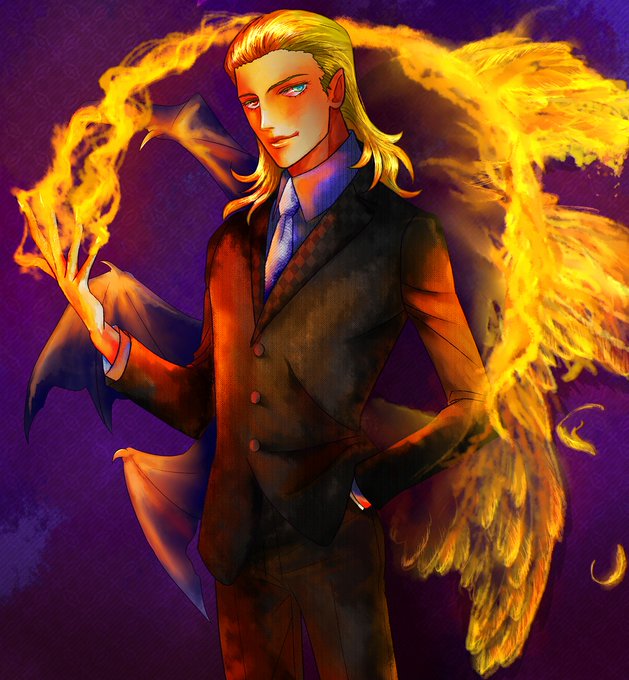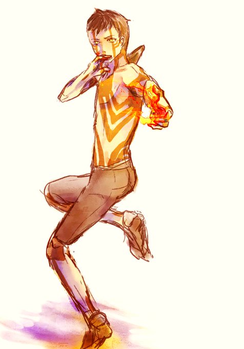〝 が変な位置に入ってるな…… デジ絵は炎の表現が面白くて、それもあって当時やたら熱そうな構図ばかり描いてた。3枚目はちょろぞ氏の線画を塗りました。