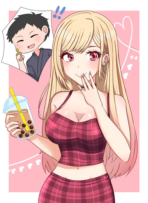 New drawing🌸💖 Gojo tries bubble tea for the first time with Marin! 🧋🧋 #MyDressUpDarling #marinkitagawa #その着せ替え人形は恋をする #gyaru #ギャル