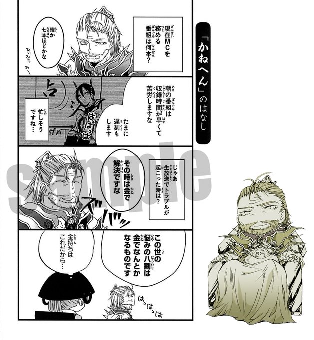 かねへんさんはただの金物屋設定だったのですが、収録の「録」とか鑑定団の「鑑」とか「鉄」とかがかねへんだったので、ネームでテレビの人になっちゃいました。気のいいお金持ちおじさんなので、きっとMCも上手いのでしょう…