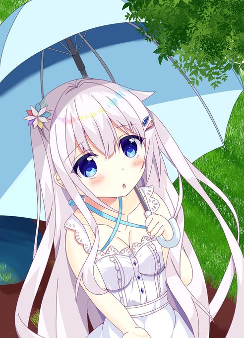 小伯白お姉ちゃん。梅雨の時期なので傘を持ってもらいました☂️
