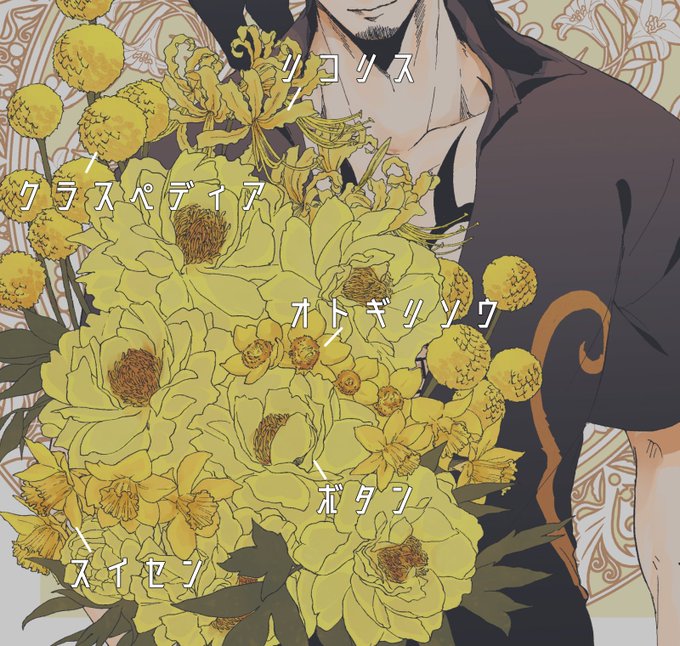 花の名前を~ってことだったので若様のも合わせてどうぞ。今回は特に花言葉とか気にしないで雰囲気で決めたやつでした