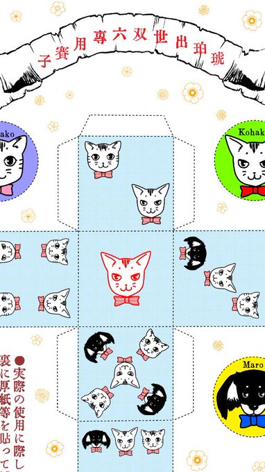 RT)かっ、可愛い。双六の目が猫と犬になっている😂コマも揃ってますので、ぜひDLして手ぬぐいで遊んでやってください。ちなみに、手ぬぐいは近日中にBOOTHにて通販を開始いたします。