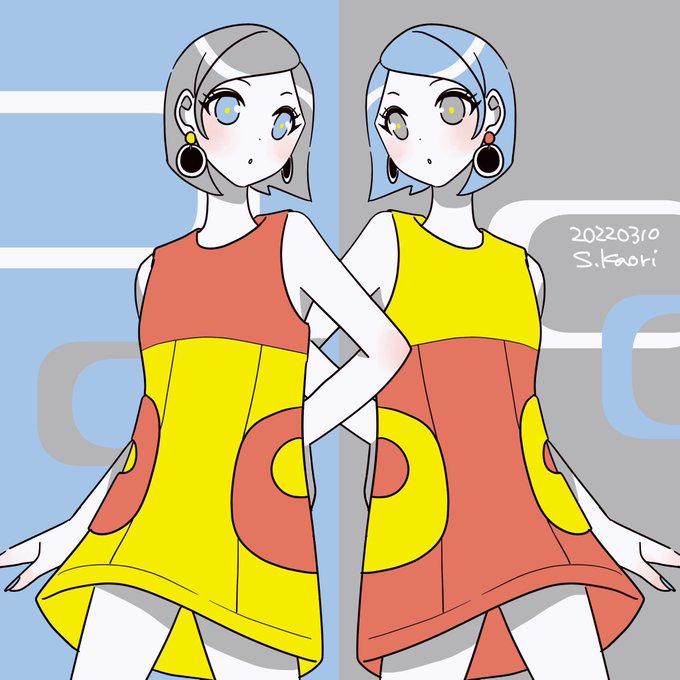 双子として設定して描いてるわけではないときもあるけど、シンメトリー構図で描くのが好きなのです👯‍♀️いい双子の日
