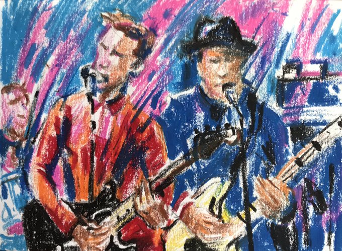 Neil Jones, singer guitarist, @stonefoundation @neilj_sf Neil Sheasby, bass #stonefoundation #livedrawing #reportagedrawing #curtistappenden @curtis.tappenden