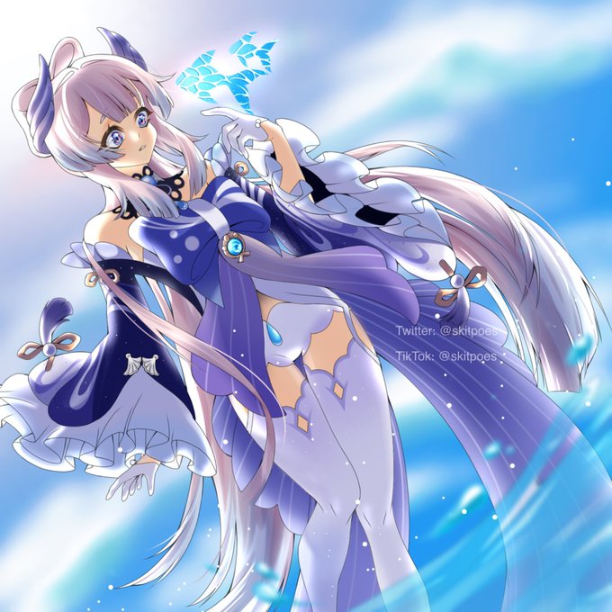 hello hello! here's the kokomi i was talking about! she's finally done, her outfit is pretty difficult.