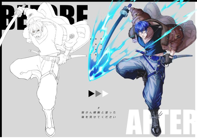 #皆さん線画と塗った後を見せてください まだ真面目に線画やろうという気概があった時