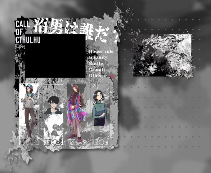 よそのソプスク陣営さんにお邪魔してメンジェ行ってます!! 参加規定の都合で7年後時空です!! 左からHO1/HO1/HO2/HO4!! 浴びるほどファンブルが出てます 終わり