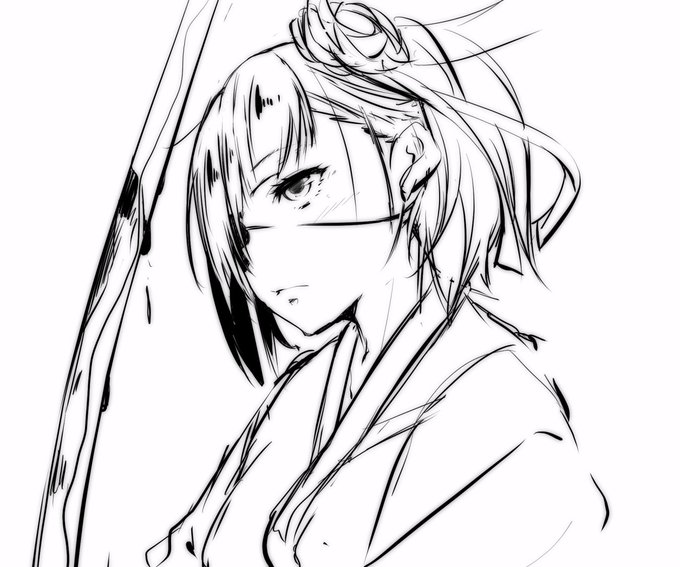 フランちゃんの髪の毛上げて表情が見たいなって絵を描いてる