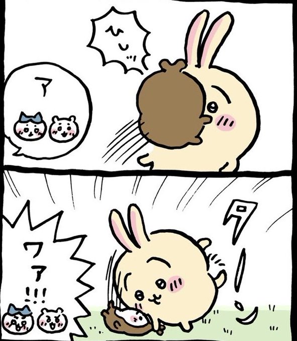 @ngnchiikawa なんだろう、前にもこんなのあった…この感じは…とちいかわちゃんは思っていそうw🐁ハチワレちゃんの感性って独特なんだろうなwそういうとこもかわいい☺️✨