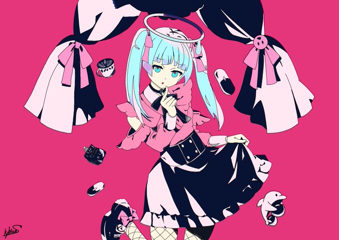#にゃひあーと 「ダーリンダンス Ver.あくあ」 下書きと比べると、目の位置とか、髪型とか、周りに浮いてるのとか変わってる 色つけるとそれっぽくなった!!