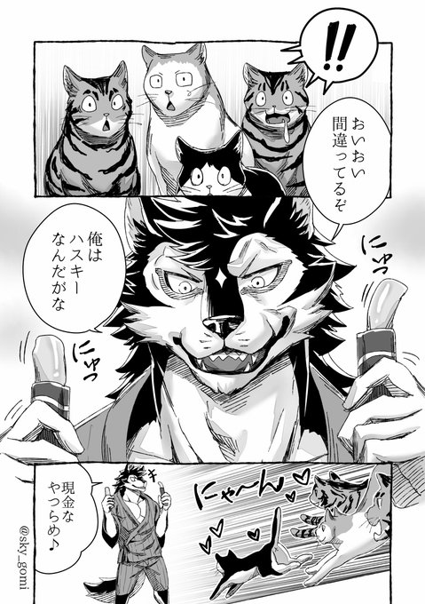 【東京人狼商店街】 ちょっとしたキャラ紹介 *オリジナル創作「東京人狼商店街」…夏の東京の商店街を舞台に、ハスキー獣人「五右衛門」の日常を描いた漫画です。 次巻に向け、Twitterでは1~2週間ごとにプチ漫画等を載せる予定🐺<よろしくな