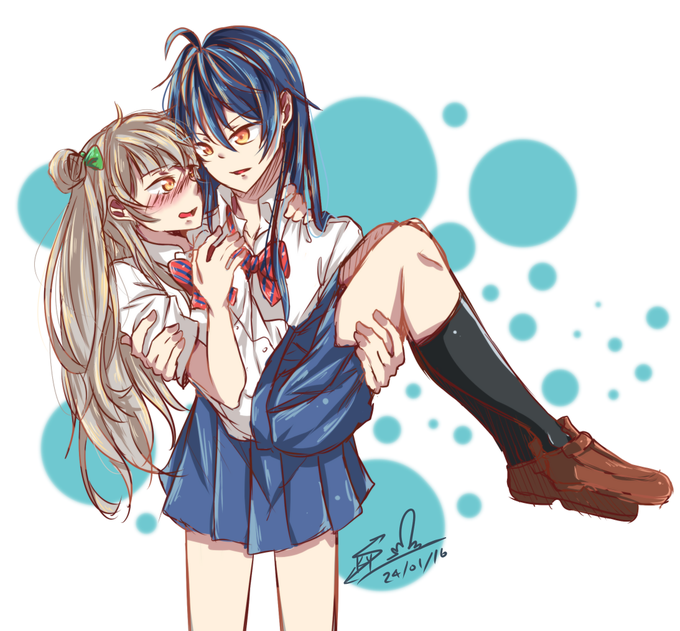 Started late and I don't remember how to draw with my tablet. Still did KotoUmi for the #lovelive_69mins prompt!