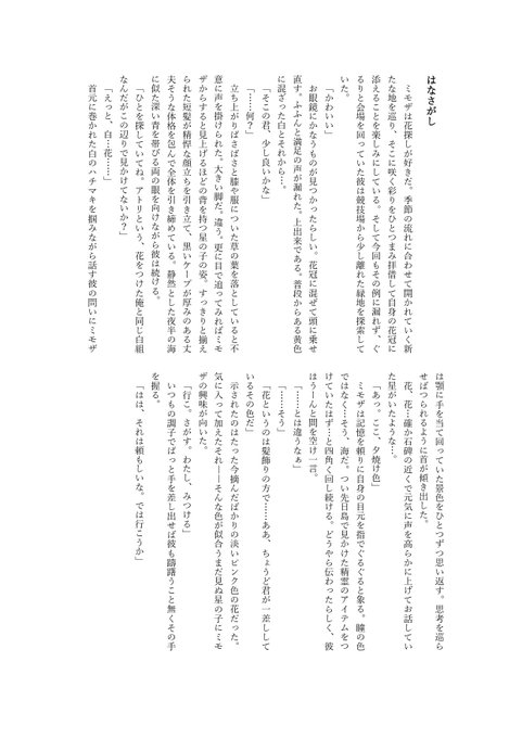 #星運動会_白 ※顔あり 『ミモザの囀り』 すごい偶然と吃驚した勢いで。