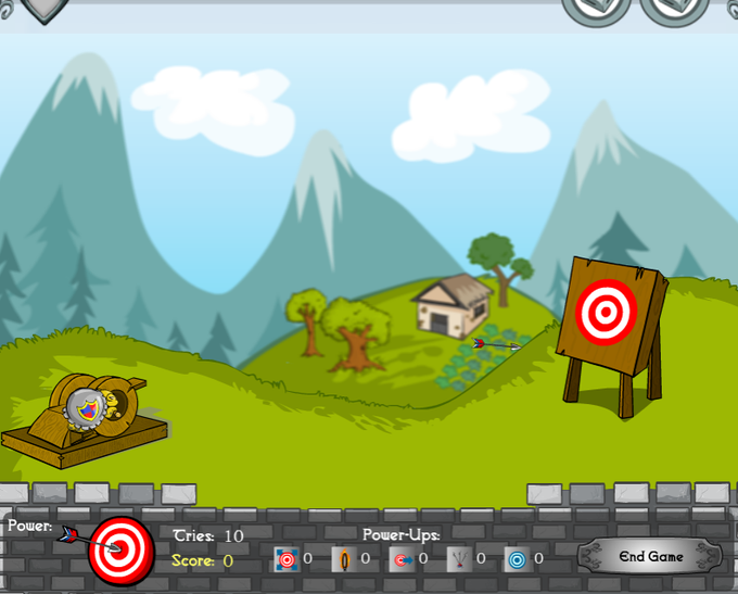Bullseye 2 - Aim with the arrow keys and hold space to charge up an arrow. Sometimes your arrow flies past the target and sometimes it hits. I don't ever want to play this again, but it's better than Advert Attack. 2/10