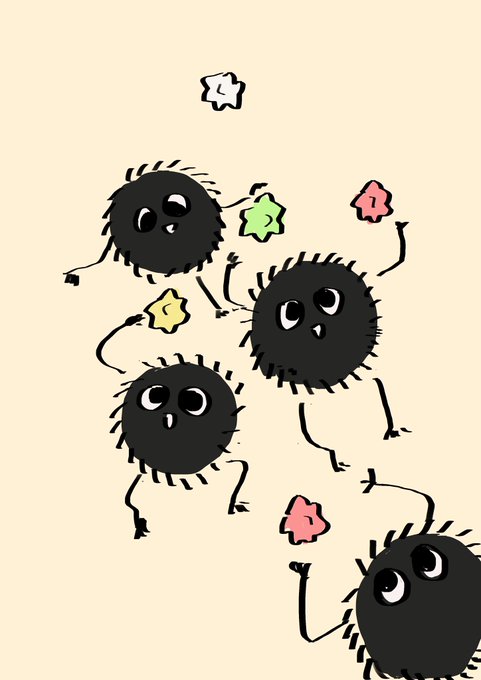 ฉากที่ชอบมากใน spirited away ตอนพวกฝุ่นขี้เถ้าได้ขนมดาว วิ่งกันวุ่นนน ⭐️