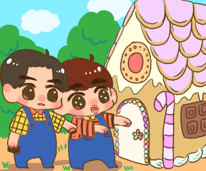 進まないヘンゼルとグレーテル 🐧スホヒョンお菓子のお家あるよ、食べてみていいかな 🐰途中でお菓子買ってあげるから帰るよ 🐧ひとくちだけ… 🐰帰るよ #exofanart #KYUNGSOO #SUHO