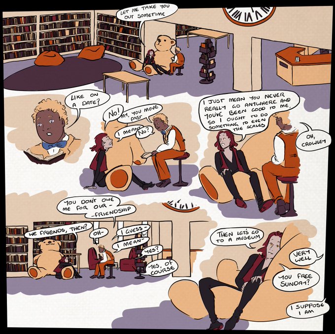 Thought I'd start sharing my #GoodOmens library au on twitter too! Get ready for my second ever attempt at a thread #goodomensfanart also, I'll put this at the end too, but there's a whole lot more on my #patreon https://t.co/Dxf4RWqLns