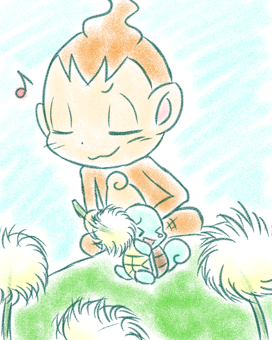 ずーっと前に描いた色鉛筆風ヒノアラシとハリマロン、背景がないのが気になっていたのですが……色鉛筆風に背景を描くのは気が遠くなる!!ってことで、水玉でごまかしておきました(笑)