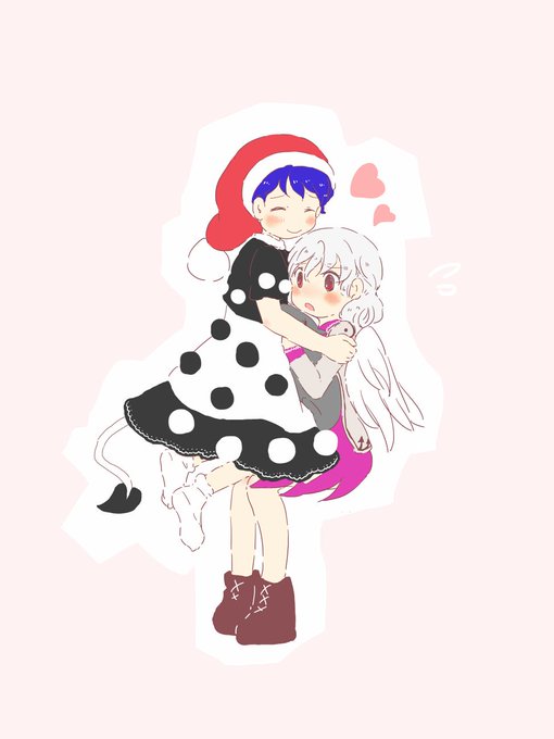 パソコンがダウンしてるので(;Д;)(;Д;)スマフォアプリで色を塗りました...出先でも移動中でもかけるのは便利... ふたりとも寝間着なので夢の中~みたいなイメージのあおりんご
