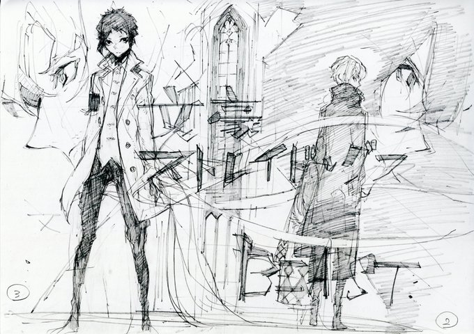 私は「文ストBEAST」の1話目のネーム1~3PとBEAST開始時にごあいさつで描かせていただいたイラストを載せようと思います。1話目の1P目は当初は存在しないページした。見開きもネーム時点ではこのような構図でした。