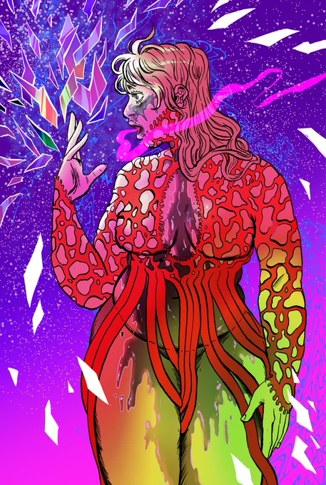 an unhinged warmup lol Tura from my comic Prism Stalker! She's wearing a lovely alien afterbirth gown with melted wax embellishments ✨