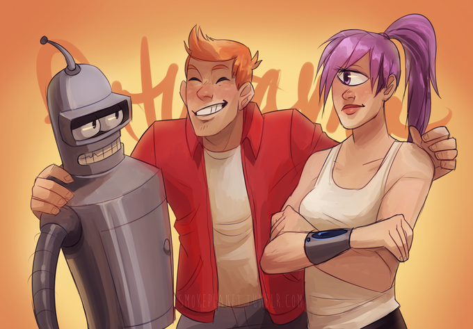 Cool style Bender, Fry and Leela in "future show" by smokeplanet | #Futurama | Source: http://t.co/LjOdPGWy6r |