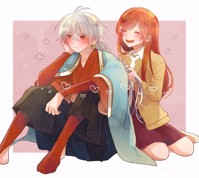 絶対お互い好きなのになかなか踏み出せない初期の頃の沖田くんvs痺れを切らしてアタックしてみる巫女ちゃん #アカセカイラスト