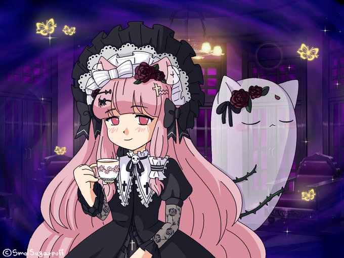 I got this cutie from Chariko and got her Ghostie traits approved AHDKFKTK loOK AT MY CHILD (T▽T) I hope you like her qwq her name is Aiko! 💕 #closedspecies #cute #kawaii #mahoushoujo