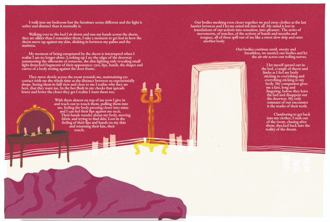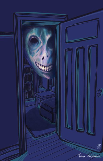 I asked Trevor to collab with me on a piece. so I illustrated the room and let him work his magic to create the ghost that haunts this space