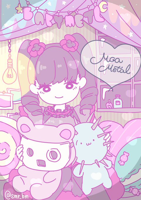 【個人的なベビメタ缶バッジ構想群】 原宿系、女の子向け それっぽすぎないから静かに主張したいときにいいかも ②はAWA風です と、ついでにもあちゃん絵~ サンリオ感…