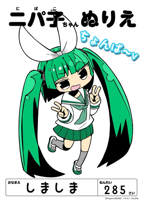 ニパ子塗り絵に挑戦 春ニパ子ならぬ皐月ニパ子的な新緑イメージの色にしたつもりが39先輩のパチもんみたいになってしもた🌳